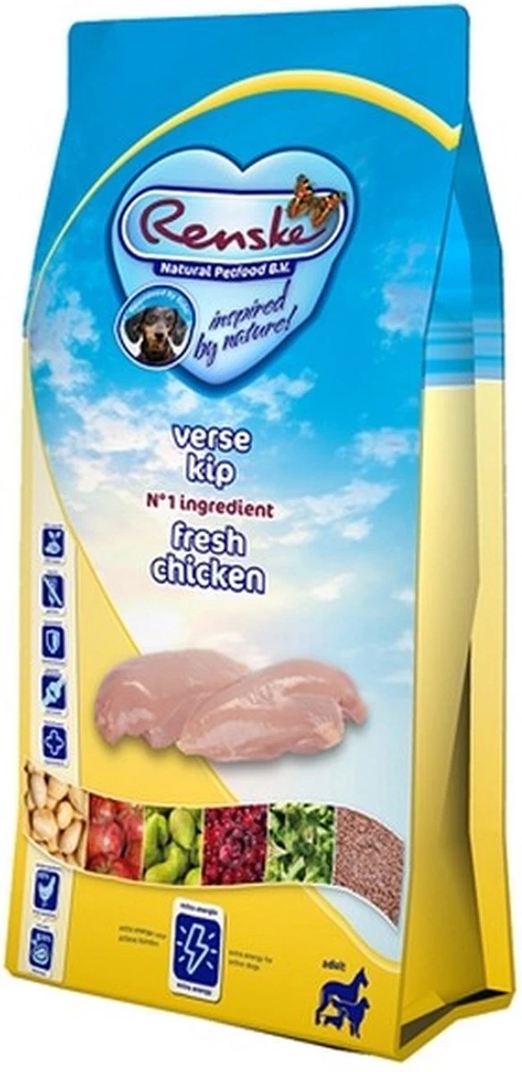 Renske Super Premium Graanvrij – Verse kip Een complete licht verteerbare voeding met verse kip.Geschikt voor volwassen honden van alle rassen.Graanvrij