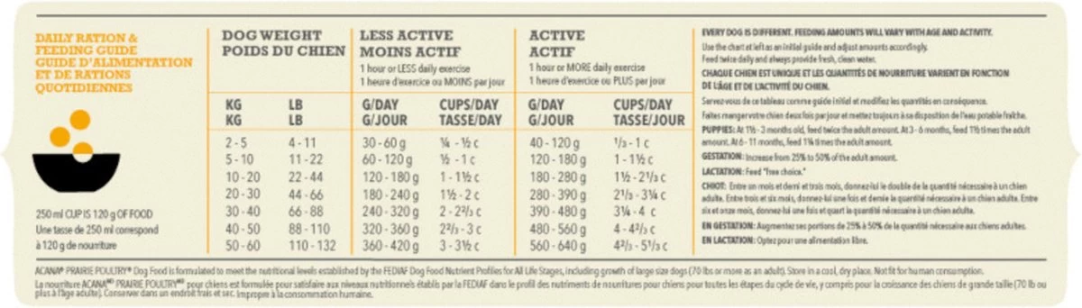 | Voedingswaarde | http://fretenmerel.nl/products/acana-classics-prairie-poultry-1 |