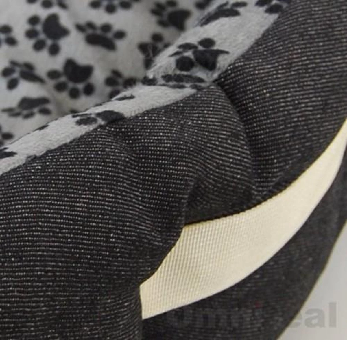 Het slaapgedeelte met extra zachte vulling is aan de binnenkant bekleed met knuffelstof. De vulling past zich perfect aan de bewegingen van huisdieren aan. De mand heeft een onderhoudsvriendelijke katoenen hoes in jeanslook aan de buitenkant.