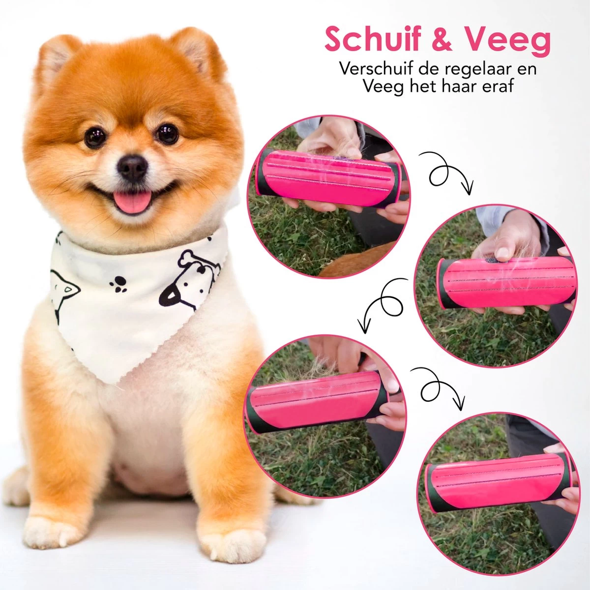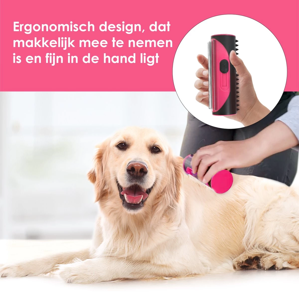 All-in-one systeem met borstels voor zowel kortharige als langharige honden