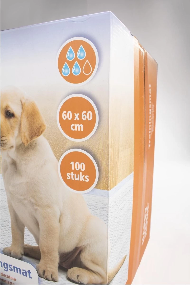 De trainingsmatten zijn absorptiematten voor urine. Met deze pads kan je je puppy leren om z’n behoefte te doen op een plaats waar jij dit wilt. Wanneer je hond plast op de trainingsmat, wordt het vocht geabsorbeerd dankzij de super absorberende gel zodat de omgeving schoon en droog blijft en vervelende geurtjes worden voorkomen. De plastic onderlaag voorkomt lekkage. Uiteraard zijn de trainingsmatten ook geschikt voor incontinente honden, zoals oudere honden of honden die problemen hebben met hun urinewegstelsel en kan je ze gebruiken bij het werpen van puppy’s en kittens. Door de plakstrips aan de onderzijde blijft de mat goed op zijn plaats liggen.