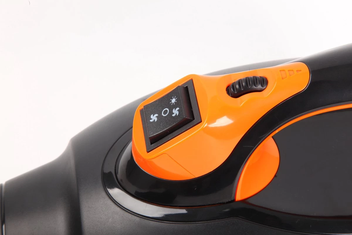 Kleur: zwart met oranje. Luchtsnelheid tot: 58m/s. Maximaal vermogen: 2200W
