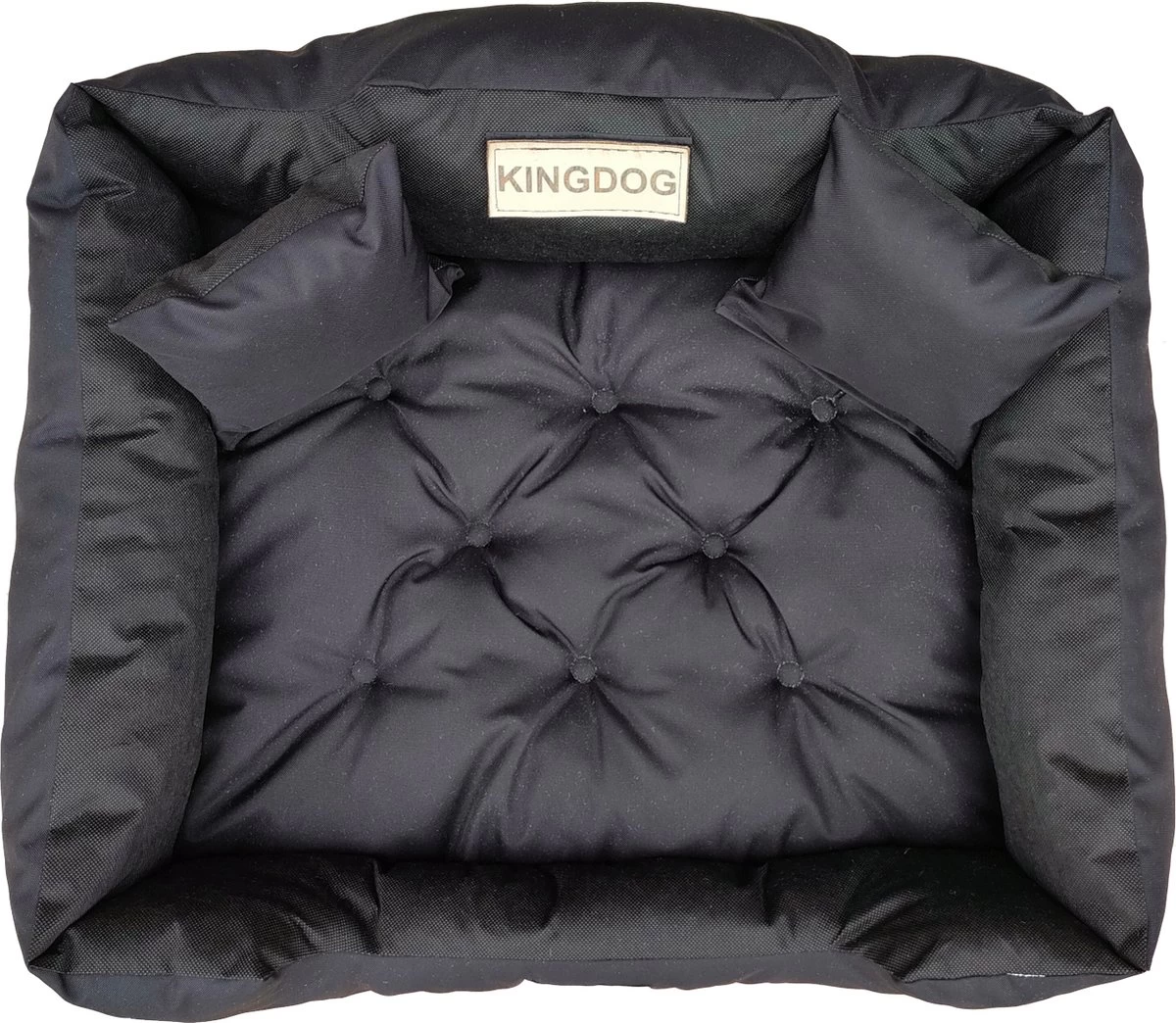 KingDog hondenbed voor uw hond of kat Maat: “XL” 115×95 Maat: “L” 100×75 Maat: “M” 75×65. “S” 55 x 45. PVC waterdichte codura – in de kleur van het bed. Stof gemakkelijk te reinigen en vlekbestendig. Twee kussens – De onderkant van het bed is gemaakt van gemakkelijk te reinigen materiaal. Er is een fabrikant naam patch op de voorkant van het hol.