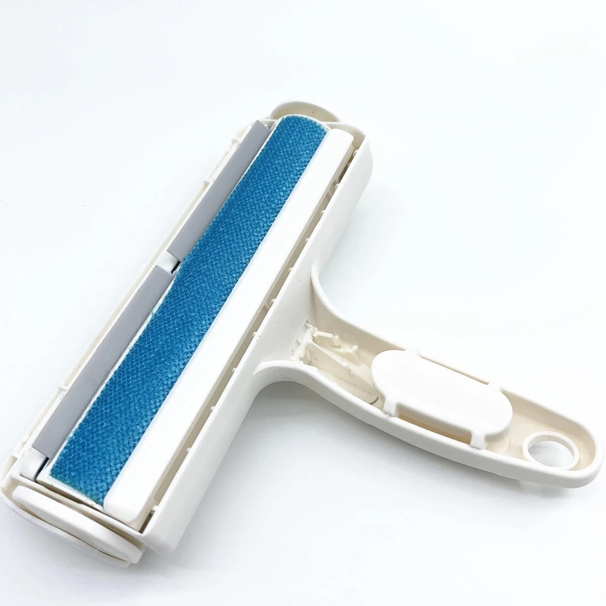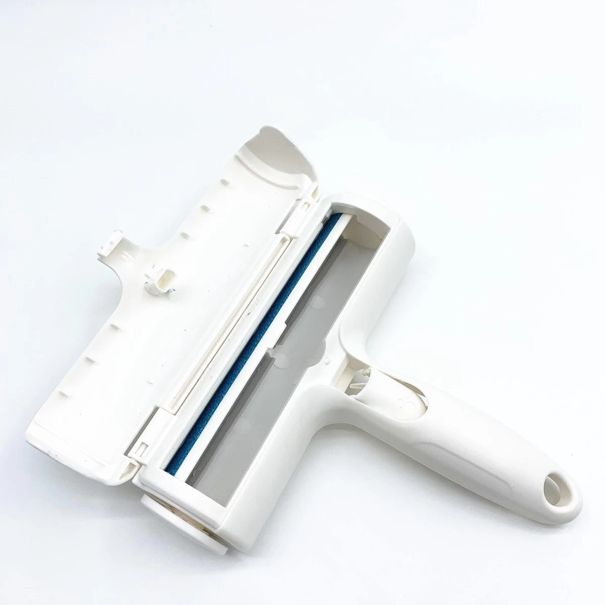 Zoals je kunt zien op de foto’s zie je dat er een opvangbakje aanwezig is in de roller. Wanneer je snel op en neer beweegt op een plek waar haren liggen komen de haren terecht in het opvangbakje. Wanneer deze vol is kun je het bakje openen en vervolgens de haren deponeren in de afvalbak. Zo Simpel is het. In de afbeeldingen vind je een handig voorbeeld hoe je de borstel het beste kunt gebruiken.