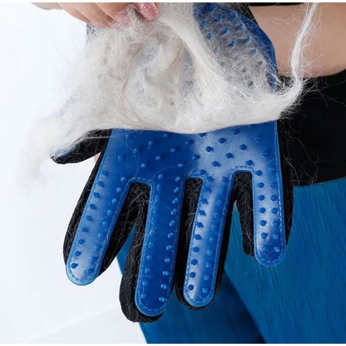 Vijfvingerige handschoen om het hele lichaam van uw huisdier te borstelen, zelfs op plaatsen die moeilijk te bereiken zijn met een borstel, zoals de achterkant van de poten, de staart of de kop.