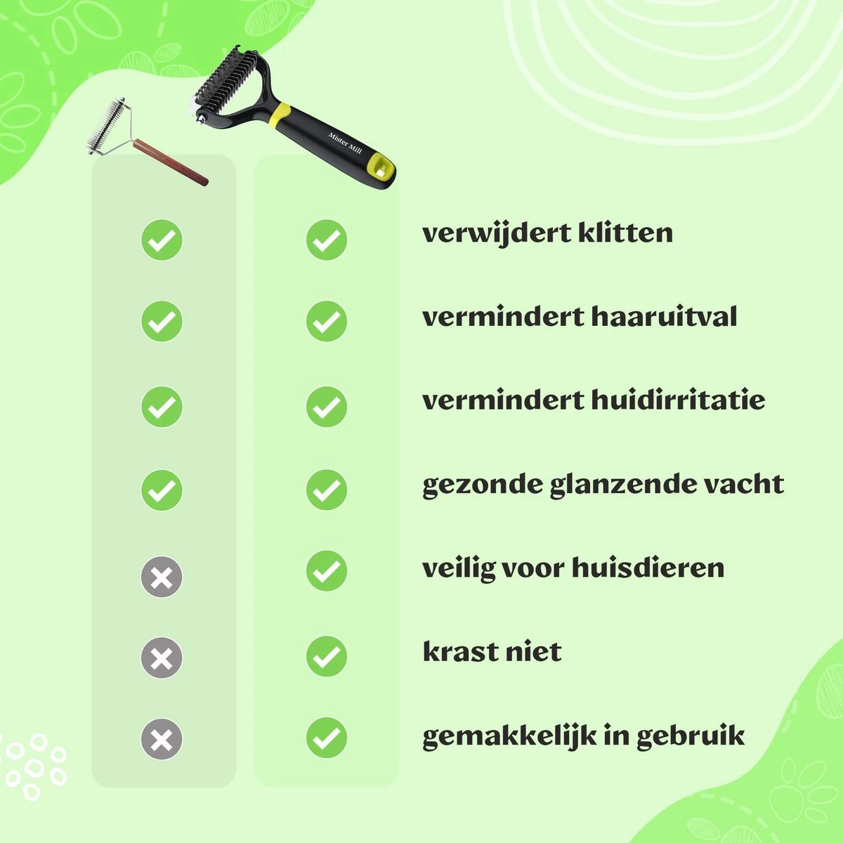 Heeft je hond of kat last van klitten of haaruitval? Dan is deze kam de oplossing! Geen losse haren meer door je huis en je hond is door deze anti klittenkam verlost van al die vervelende klitten en knopen. Geef je hond de zorg die hij verdient en laat zijn vacht weer glanzen en stralen. De Mister Mill ondervacht kam geeft je de ideale oplossing.