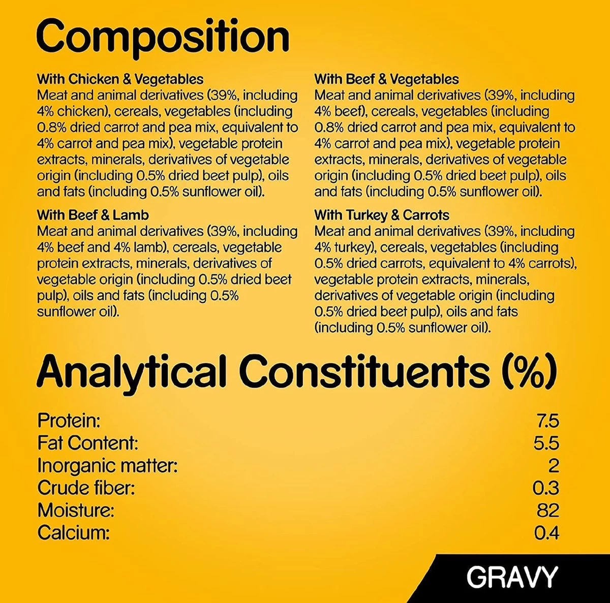Groot, grootverpakking van gemakkelijk te openen individuele pakjes, ideaal voor een verse gezonde dagelijkse maaltijd, op zichzelf of als aanvulling op droogvoer voor honden. Voeding voor honden die helpt het welzijn van uw speciale huisdier te ondersteunen – gezonde botten, een goede spijsvertering, een gezonde huid & vacht en een sterk natuurlijk afweersysteem. Heerlijk hondenvoer met kauwbare ingrediënten van goede kwaliteit, maar bevat geen kunstmatige kleur-, geur- en smaakstoffen of conserveringsmiddelen
