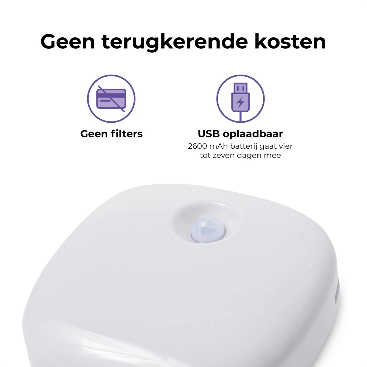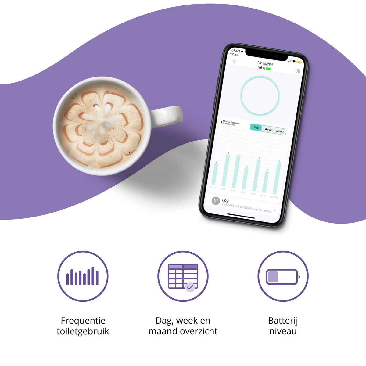 Met behulp van ozon en negatieve ionen tovert deze kattenbakverfrisser het kleinste kamertje van jouw kat om tot een fris plaspaleisje. Bovendien helpt de Air Insight jou om de complete verzorging van jouw kat in één oogopslag in de gaten te kunnen houden. Via onze app zie je gemakkelijk hoe vaak jouw schatje naar de kattenbak gaat en hoeveel batterij de Air Insight nog heeft. Is de geurverwijderaar leeg? Dan laad je hem eenvoudig op met de bijgeleverde kabel.