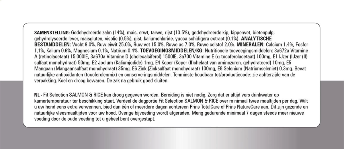 De producten van Fit Selection zijn net als alle andere Prins producten samengesteld met hoogwaardige en goed verteerbare ingrediënten. Fit selection is daarmee een gezonde en complete gezondheidsvoeding welke zeer geschikt is voor de familiehond. Deze smakelijke en krokante brok is er in 2 varianten, Kip&Rijst en Zalm&Rijst.