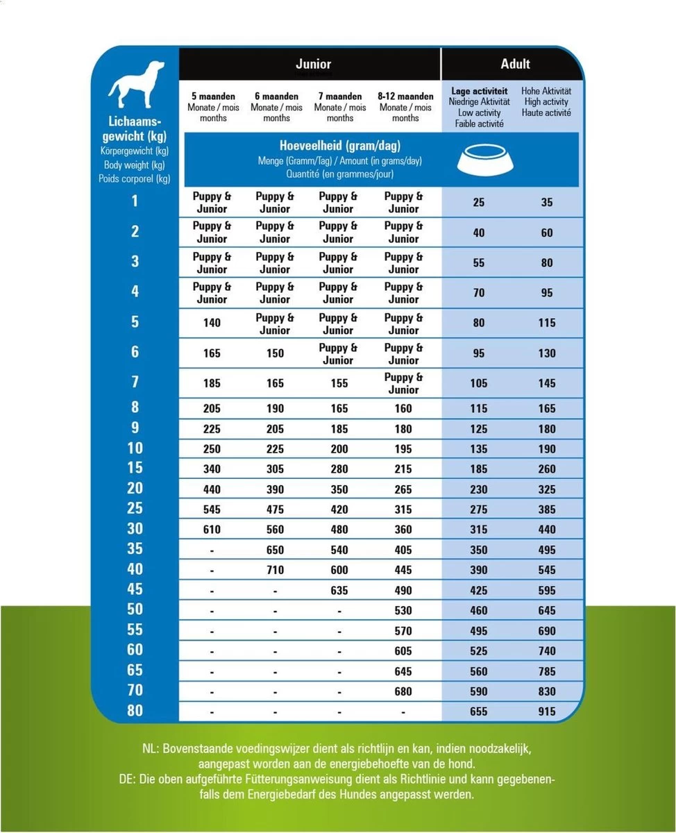 ANALYTISCHE BESTANDDELEN: Vocht 9.0%, Ruw eiwit 25%, Ruw vet 17%, Ruwe as 7.0%, Ruwe celstof 2.5%.