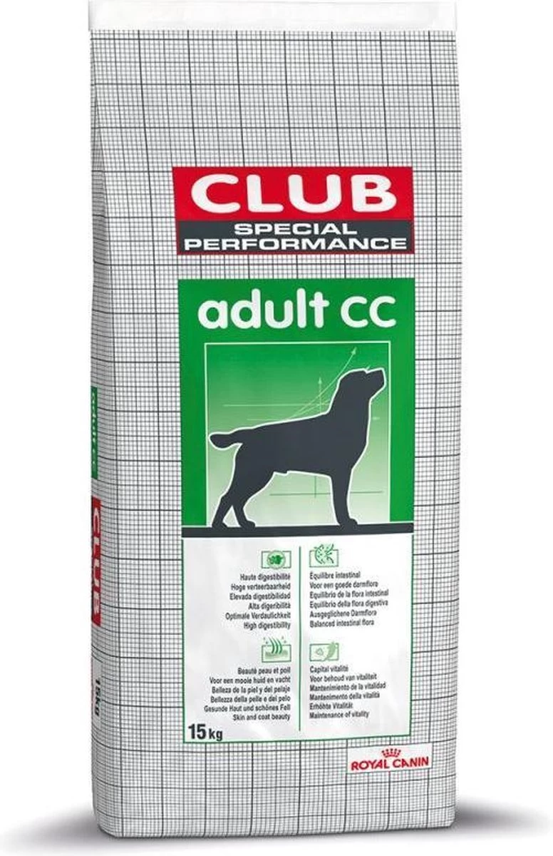 Royal Canin Special Club CC performance hondenvoer is een gezonde en lekkere droogvoer voor volwassen honden met normale activiteitsniveau. De zorgvuldig uitgebalanceerde samenstelling zorgt voor een hoge mate van acceptatie en tolerantie. De ingrediënten zijn uitgebalanceerd en zorgen ervoor dat uw hond van een uitstekende gezondheid kan genieten. Royal Canin Special Club CC helpt een optimale energie-niveau te behouden en het ideale lichaamsgewicht te ondersteunen.