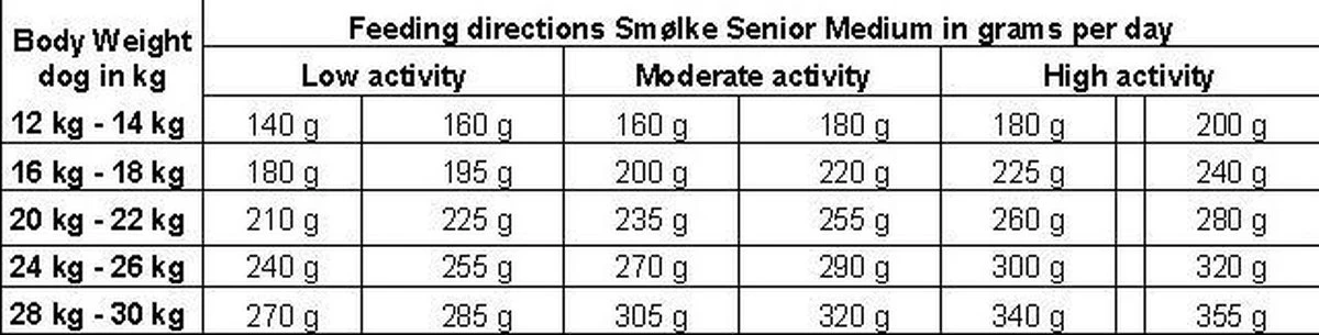 Voedingstabel Senior Medium