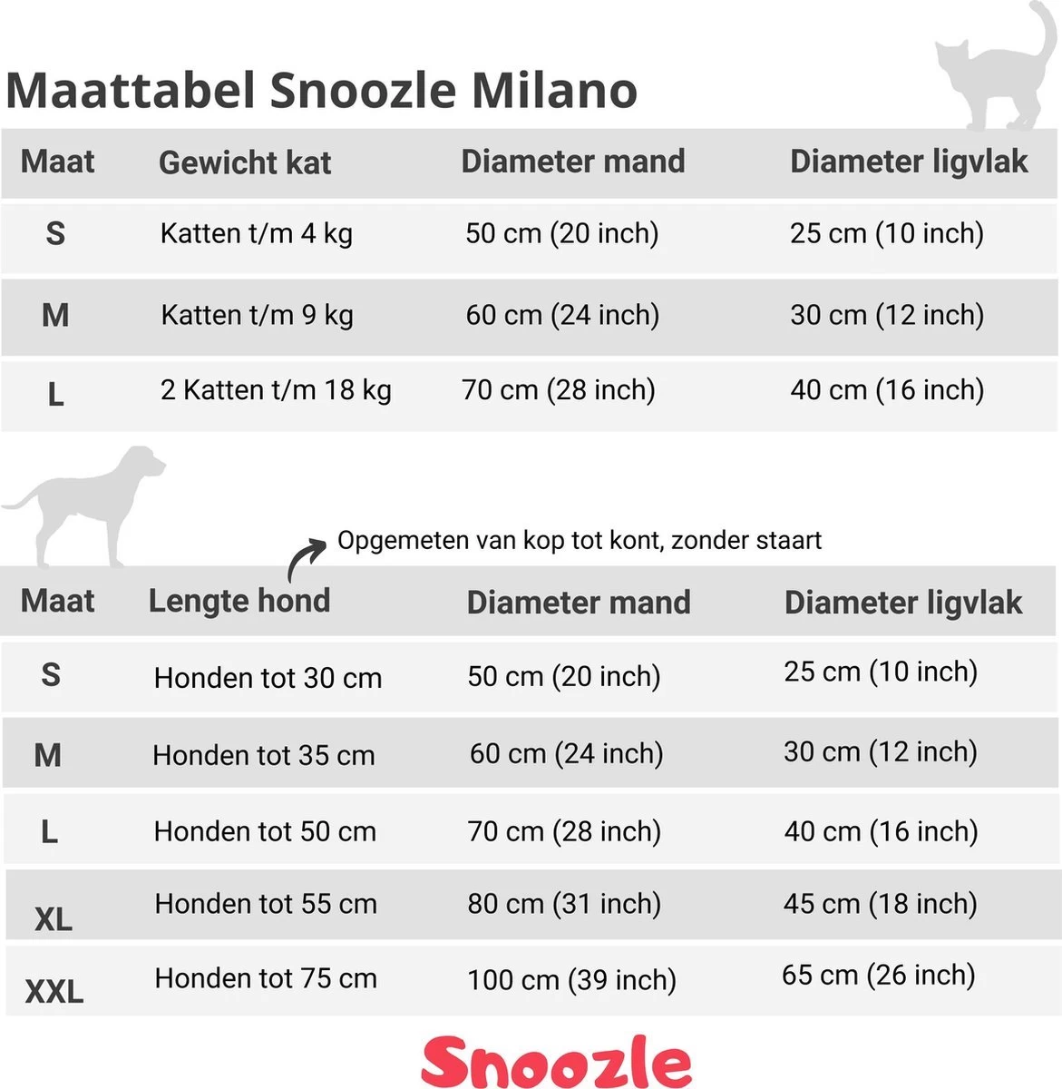 M 60 cm = voor honden tot 35 cm in lengte (bv Teckel)