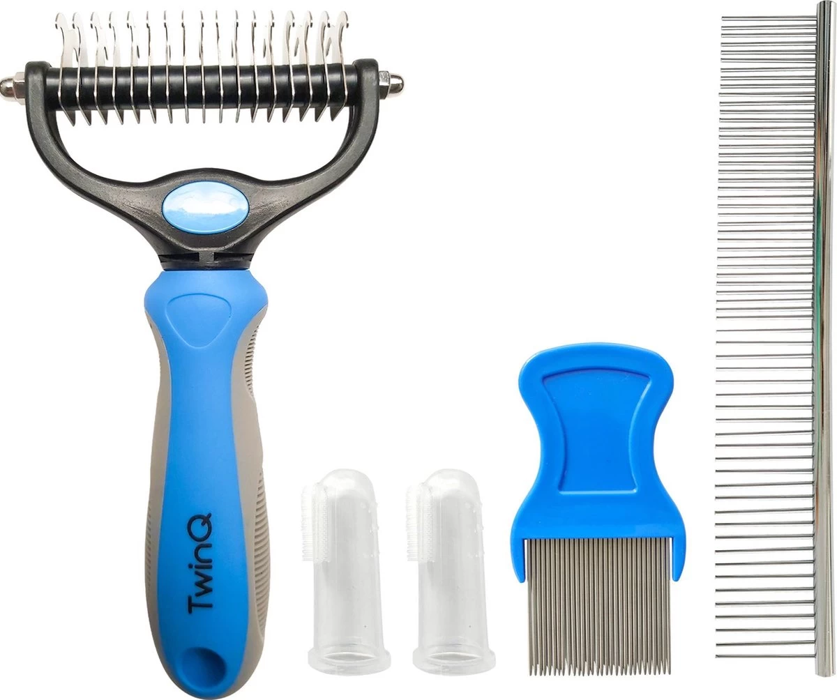 Heeft uw hond of kat last van vervelende klitten? Geen probleem! Met deze professionele vachtverzorgingsset van TwinQ is dit verleden tijd. Dankzij de afgeronde messen kunt u de ondervacht in een paar minuten met de hondenkam/kattenkam verwijderen zonder dat uw harige vriend hier last van heeft. Je zult verbaasd zijn hoeveel ondervacht u uit de vacht van uw hond of kat haalt!