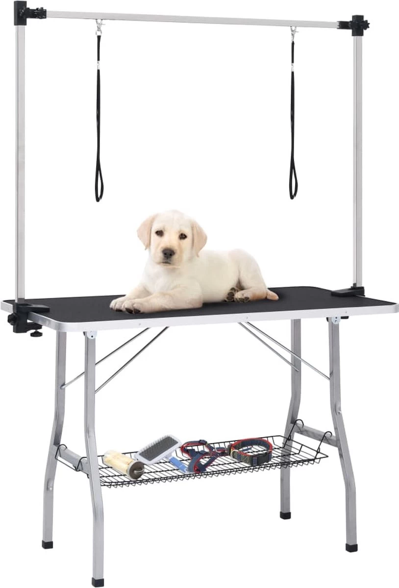 Scherpere prijzen op https://www.ni-vi.com De trimtafel voor honden is een goede keuze om je lieve huisdieren het hoogste comfort te bieden tijdens het trimmen. Deze trimtafel voor huisdieren wordt ondersteund door stalen poten. waardoor hij stabiel en stevig staat. Dankzij het grote anti-sliptafelblad staan je huisdieren op een comfortabel oppervlak. De roestvrijstalen trimarm is in hoogte verstelbaar. Je kunt de hoogte dus perfect aanpassen aan jezelf en je huisdier. De tafel is inklapbaar en daardoor makkelijk op te bergen. wat ideaal is voor mobiele dierentrimmers en thuisgebruik. Onder het tafelblad bevindt zich een schap voor het opbergen van huisdierbenodigdheden. De afgeronde tafelhoeken voorkomen blessures.