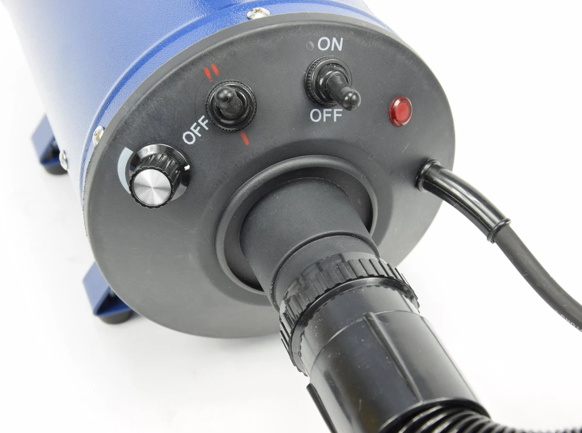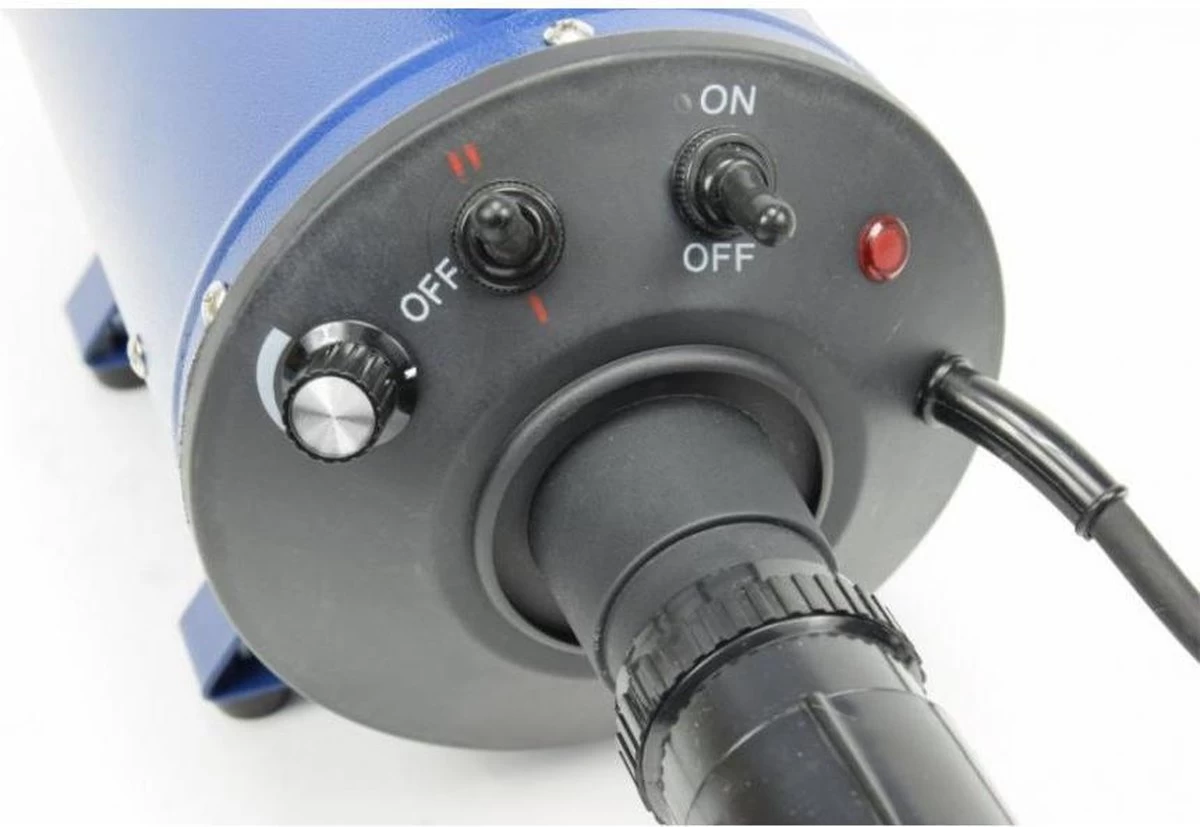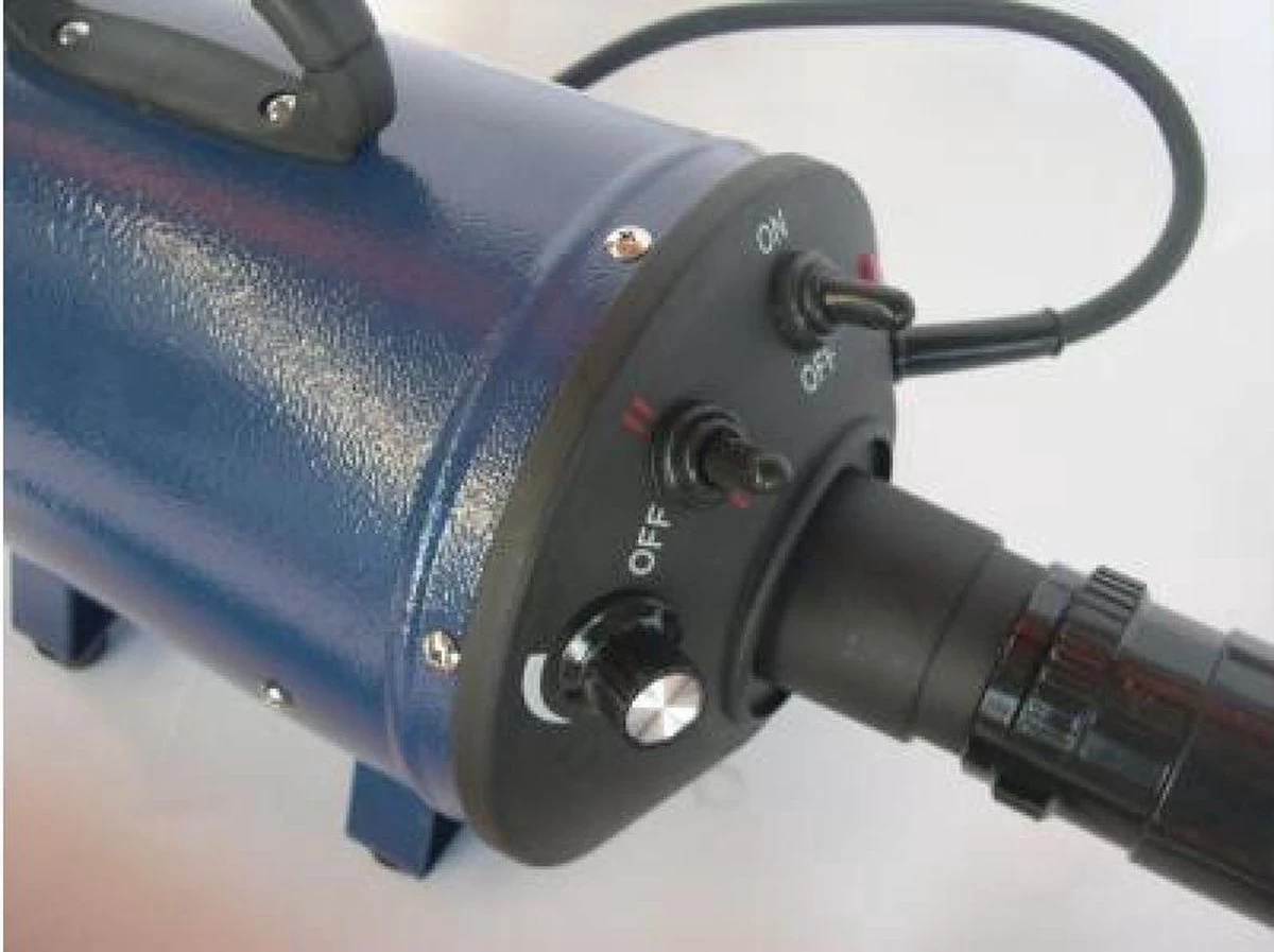 De TRITRA BS droger met metalen behuizing heeft een traploos regelbare motor (2200 watt), dus zachtjes blazen (fohnen) is ook mogelijk maar voluit geeft de TRITRA BS droger een ongelofelijke krachtige luchtstroom. ‘ Met warmte warmtelement, dus met warme lucht, te regelen middels een schakelaar , 3 standen koud, warm en heet. Word geleverd met 2 spuitmonden.Waterblazer met prima prijs/kwaliteit verhouding.